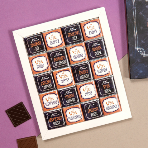 Шоколадный набор «Мужчине» – 100 г Изысканный шоколад для настоящего мужчины! В элегантной чёрной коробке – 20 плиточек отборного чёрного и молочного шоколада, которые подарят минуты настоящего удовольствия. Строгий стиль оформления делает набор универсальным подарком: на день рождения, профессиональный праздник или просто так, чтобы выразить благодарность и заботу. Вес – 100 г (20 мини-плиток). Шоколад – чёрный и молочный, насыщенный и ароматный. Стильная упаковка размером 19 × 16 × 1,7 см. Срок годности – 10 месяцев. Идеальный вариант для любимого, друга, папы или коллеги – лаконичный, вкусный и всегда к месту подарок.